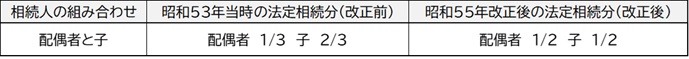 改正前は、子が配偶者の2倍の権利を持っていました。しかし、改正により、配偶者と子が平等な権利(1/2ずつ)を持つことになりました。これは、夫または妻を亡くした配偶者が、残りの人生を経済的に安定して送れるようにするための、時代の要請に応じた改正でした。この改正は、1981(昭和56)年1月1日以降に発生した相続に適用されています。